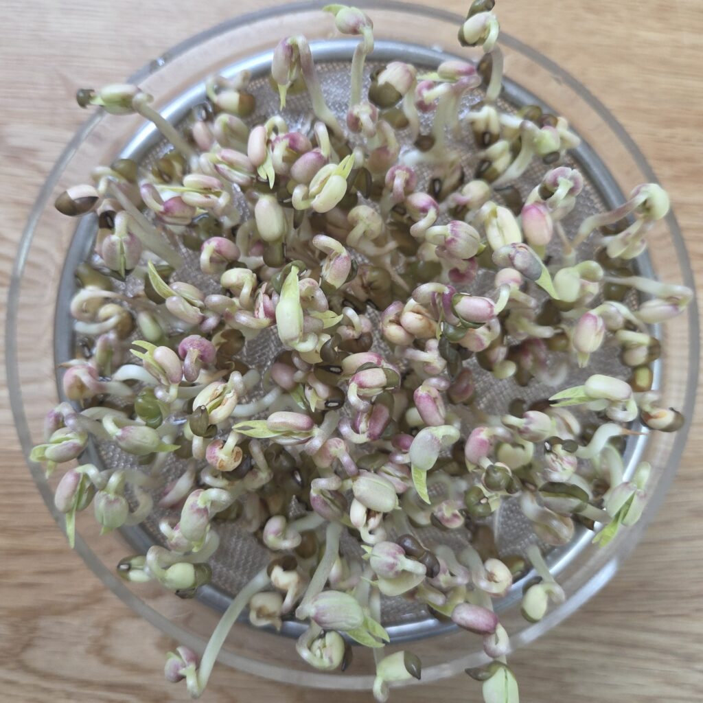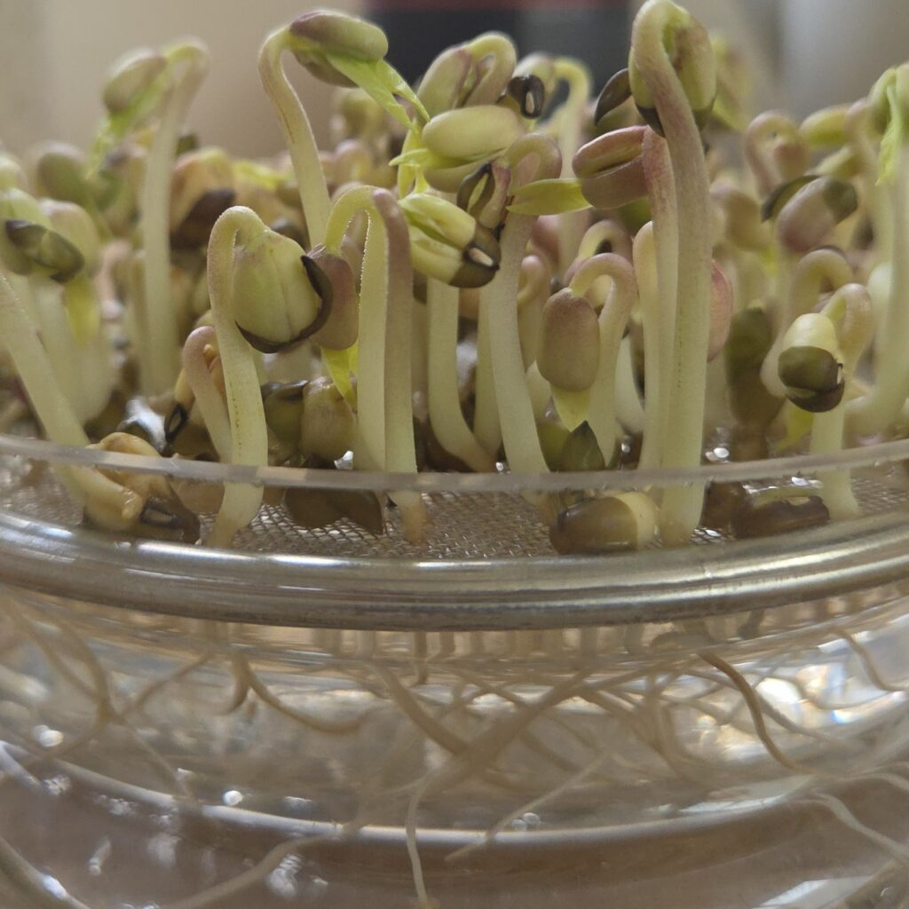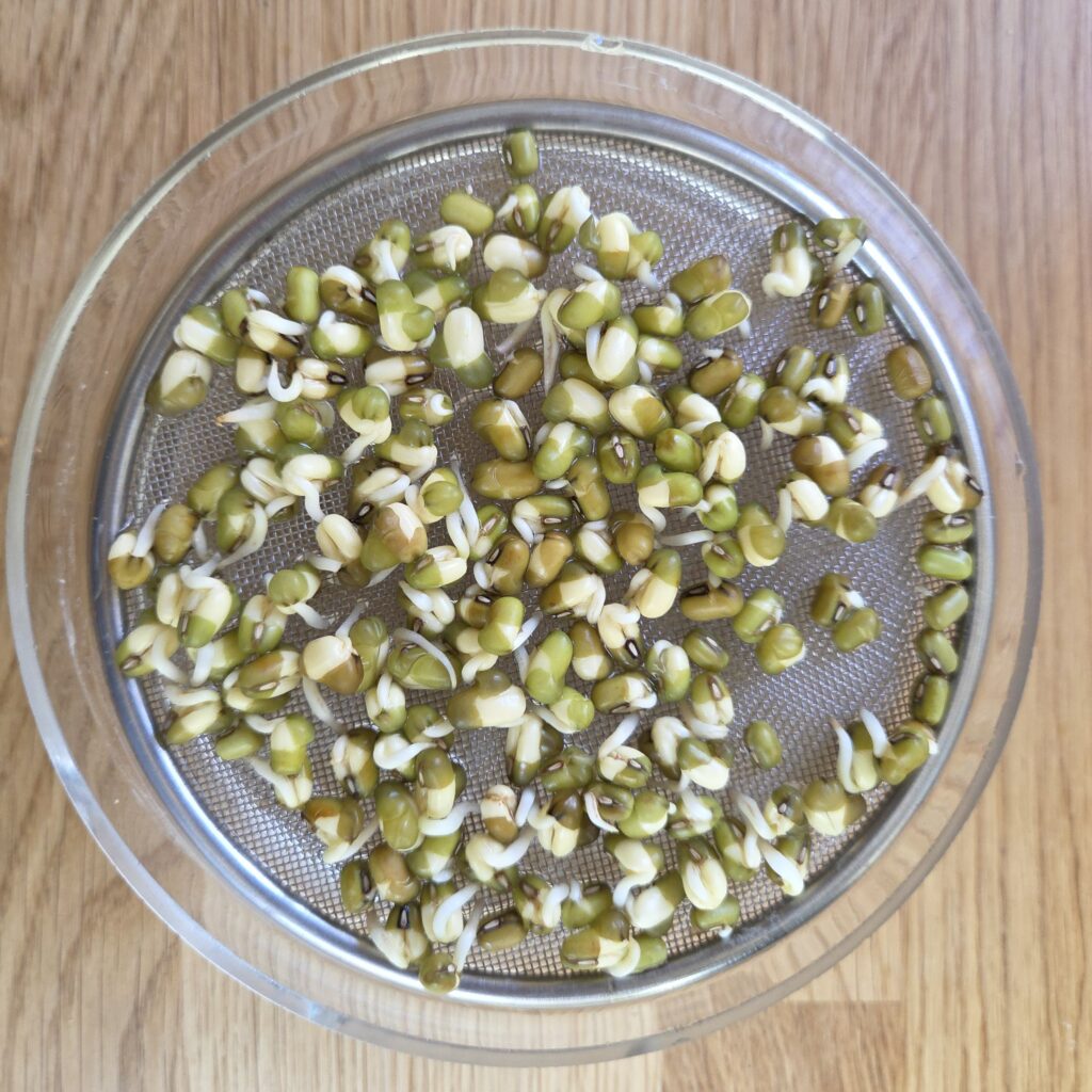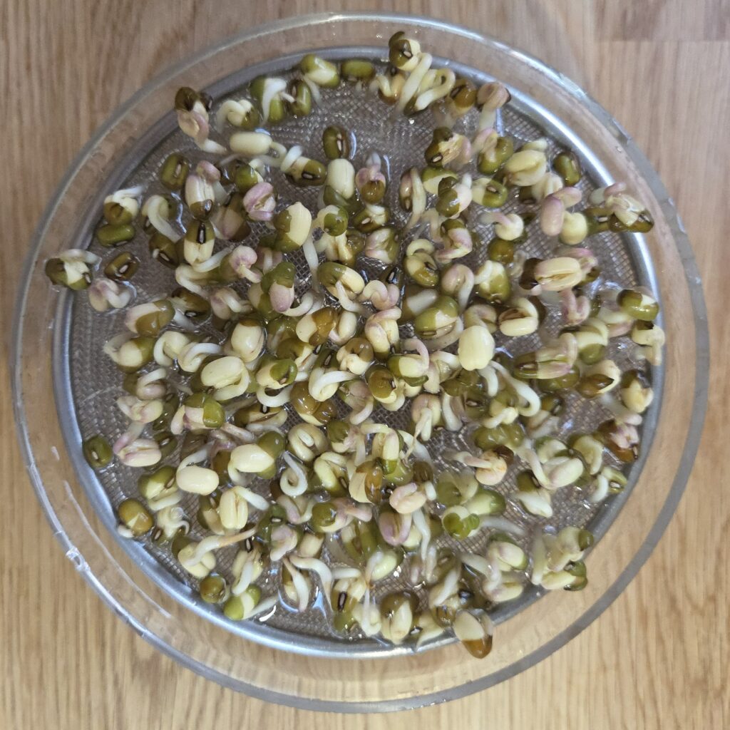 Conclusie: Dit was een supertof eerste experimentje! Het enige waar je op moet letten is om het water elke dag even te verversen en je hebt na dik een week gewoon verse taugé. Volgende keer wil ik het schaaltje écht donker zetten om de kiemen wat langer te trekken (zou dat werken?), en ben wel eens benieuwd hoeveel gram taugé uit hoeveel gram bonen komt. Ik ben opgeleid als chemist hè, het moet wel allemaal nauwkeurig en analytisch gebeuren. Was ik hier een beetje vergeten…